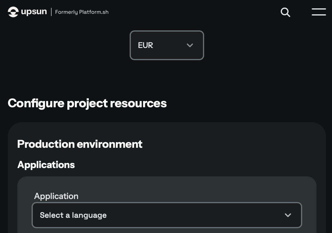 Upsun pricing page + calculator